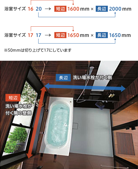 浴室をプランニングする手順で、一般的に最初に決める仕様は、希望する「浴槽のサイズ」です。浴槽のサイズを決めた上で、浴室全体の細かい設備を決めていきます。