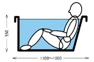和風浴槽と違い足を伸ばして肩までつかり体全体を暖める事が出来ます。