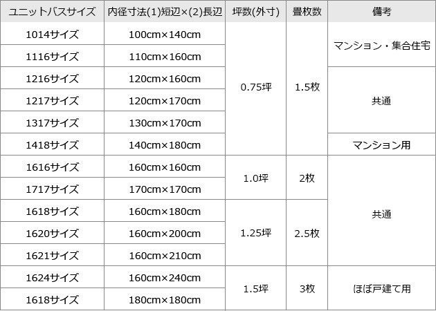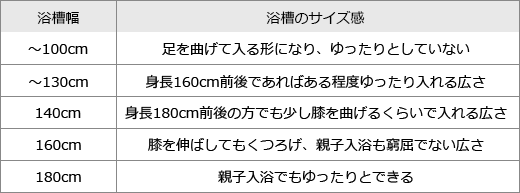 浴槽のサイズについては前述した通りで、この記事内にある「浴室の標準的な広さについて」を参考に決めてください。