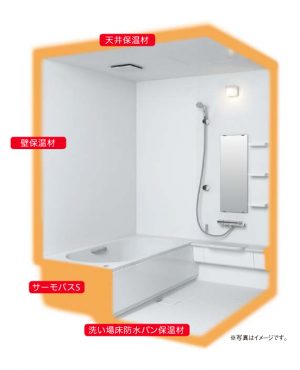 例えば、ほとんどのシステムバスの浴槽は二重構造となっており、断熱性が高められているので、お風呂のお湯が冷めにくいなどの特徴があります。