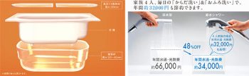 どれくらいやすくなるかについては、商品により違うので一概に言う事は出来ませんが、動きのある商品については半額に近い価格で購入することが出来ます。(浴槽をリフォームする際の購入価格は、また違います)