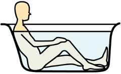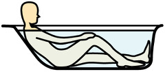 洋風浴槽では、足を伸ばした楽な姿勢で、肩までしっかりとお湯につかる事が出来るので和風浴槽のような圧迫感がなく、浴槽に身体を預けるような形で入浴ができます(ただし人によっては仰向けになった状態では身体が浮きやすいというデメリットもあります)。