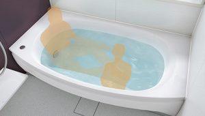 ただし、傾斜のかかった背もたれの部分は特に滑りやすく、起き上がりにくいというデメリットもあり、高齢者の方には不向きな浴槽です(高齢者の方が使う場合は滑り止めや手すりなどをつける必要があります)。