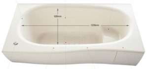 洋風浴槽の一般的な幅は1200ミリから1800ミリ程度で、一般的な浴槽の高さは450ミリ程度とされています。