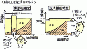 ※繰り上げ返済には、「期間短縮型」と呼ばれる、毎月の返済額はそのままで、元金と利息が減った分期間を短縮する方法と、「返済額軽減型」という、毎月の返済額を減らすがあります。詳しくは、「住宅ローンの選び方と知ってトクする住宅ローンの8つのポイントと種類」内の「6:住宅ローンの返済期間を短くする繰り上げ返済」をご覧ください。