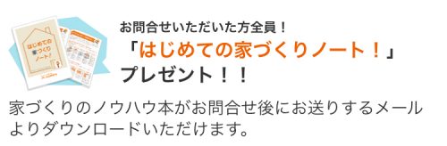 こちらからカタログを請求して頂くと、今なら、カタログ請求特典として、「はじめての家づくりノート」をもれなくプレゼントしています。