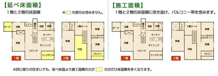 坪単価を安く見せる方法1:坪単価は「延べ床面積」で計算するのか「施工床面積」で計算するのかで金額が違う