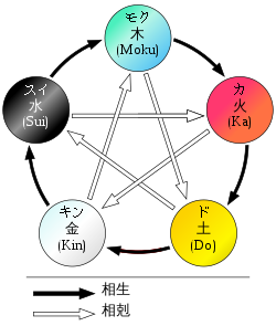 このうち相手を生かす関係を相生関係(そうしょう かんけい)といい、ダメにする関係性を相剋関係(そうこくかんけい)と言います。