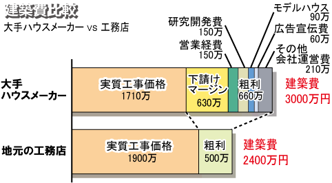 一方で、地域の工務店はそうした下請けマージンや広告宣伝費、モデルハウス運営費などがかかりませんから、もともと経費が抑えられた収益構造になっています。
