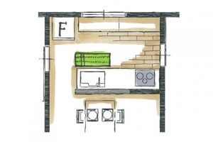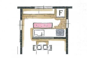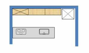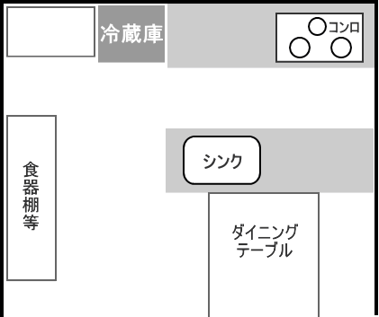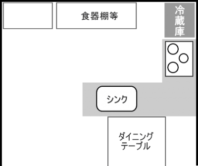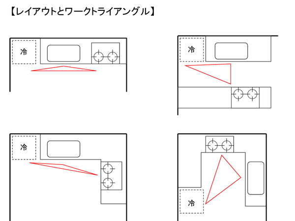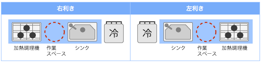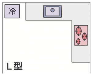 一般的なキッチンの場合、キッチン手前の冷蔵庫が、最も使い勝手の良いキッチンになる間取りとされています。