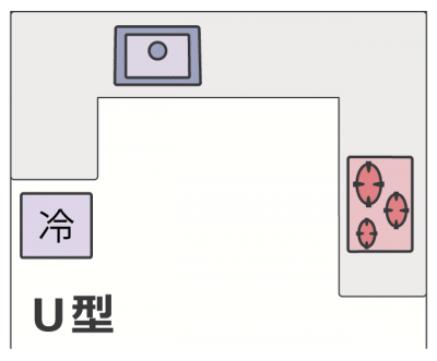 - 47 コの字型キッチン(U型キッチン)のメリット