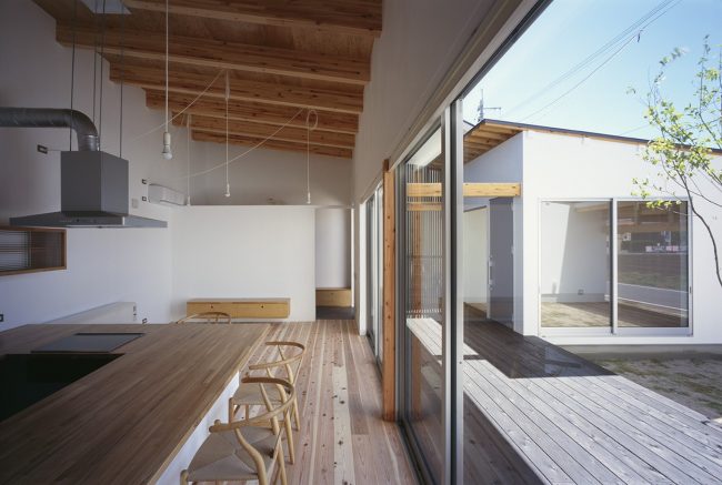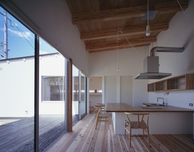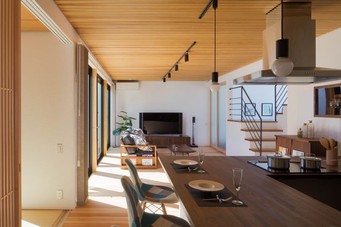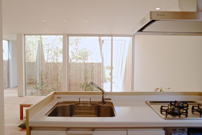 独立型のキッチンにすることでキッチンで調理をしている最中の油汚れや煙、水はねなどを防ぐことができ、キッチンとダイニングのお互いの関係を尊重して扉などで仕切ることができます。