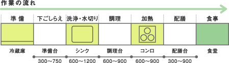 使用頻度に応じて使いやすい位置を検討するとより作業効率を優先したキッチンを配置することができます。
