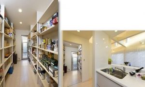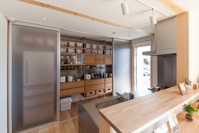 この場合、キッチンを挟んで廊下を設置し、ダイニング側からと廊下側2つの方向からアクセスできるようにすると家事動線に広がりが生まれ便利になります。