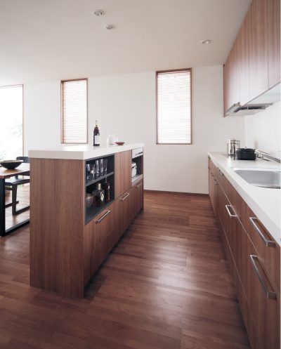 「並列型キッチン+ダイニング」は、縦に並べるタイプと横に並べるタイプの2パターンがありますが、配膳や片付けが楽なキッチンが出来上がります。