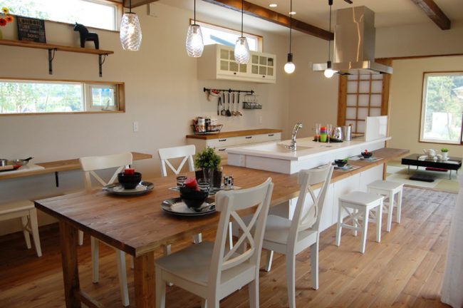 「調理の流れを意識したキッチンの作り方」の「ワークトライアングルを意識したキッチンにする」でもお伝えしましたが、キッチンとダイニングの関係を工夫することで、家事動線が便利な間取りはもちろん、キッチンとダイニングお互いの関係を尊重し合う間取りにすることができます。