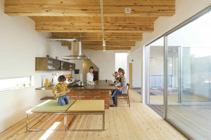 対面型キッチンとダイニングの場合は、キッチンに立つ人が孤立せずに家族とコミュニケーションを取りながら調理作業を進められることができます。