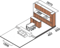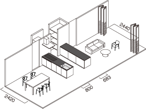 キッチンの奥の見えない位置に冷蔵庫を置く場合は、そもそも冷蔵庫の存在を消してしまい、キッチンに冷蔵庫があることが見えない配置になります。