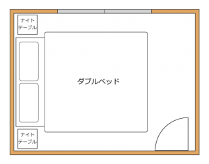 ツインベッドかダブルベッドかによっても違いはありますが、寝室のベッドの配置の仕方は下記の通りです。