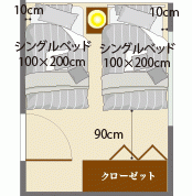 1:シングルベッド(またはセミダブルベッド)を横に並べるツインベッドの場合