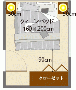 またベッドの配置次第で寝室内の照明の位置はもちろん、窓の位置や、コンセントの配置も変わってきます。クローゼットの配置も変わってくることもあるでしょう。