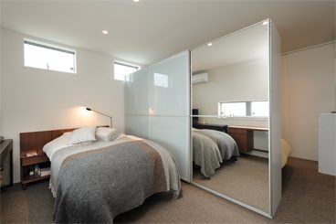 たまに建築家が設計する寝室の間取りにおいても、十分な通路幅を確保できるのに、一方の端を壁側につけるような形の寝室の間取り計画を見ることがありますが、使い勝手を考えずに設計されている場合もあるので注意してください。