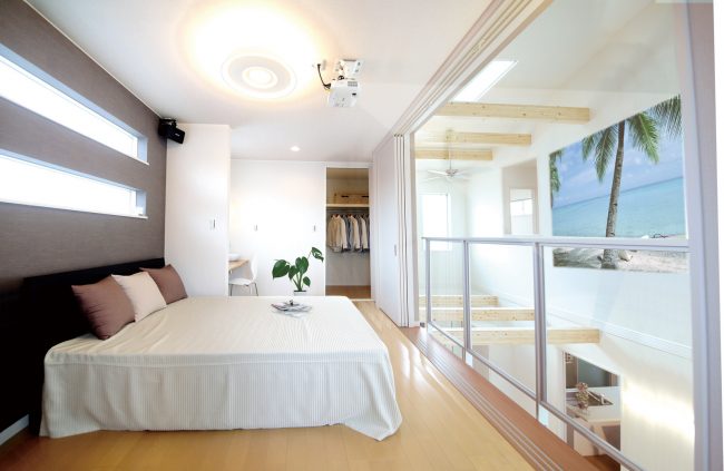 映画好きのご夫婦の場合は、寝室内の遮音性を高めて、大きなスクリーンを設置すれば、夫婦で映画を観るスペースを寝室内に確保することができます。