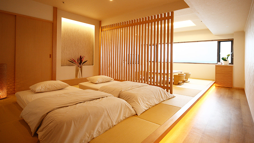 ベッドの奥にあるのがリトリートスペース 出典:淡路インターナショナルホテル ザ・サンプラザ