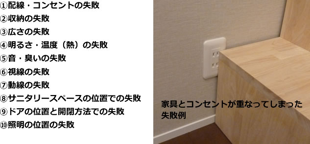 必ず一つ一つ位置、場所、高さなどを確認し、それで問題ないか、実際の生活を送る上で不便な位置にないか、家具で隠れてしまわないかなど、細部に渡って確認する癖をつけてください。