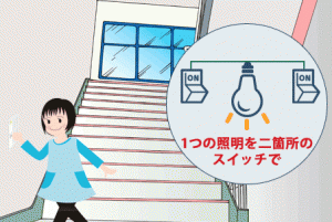 例えばリビングから廊下に出る時に、階段の電気をつけ、リビングの電気を消すためにリビングに戻り、階段をのぼってから2階の寝室の電気をつけ、それから階段に戻りスイッチを消し、寝室に戻らなければならないというような無駄な動きが必要となる電気配線になってしまうこともあります。