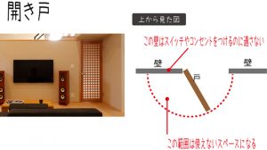 部屋の扉を開けた時に、スイッチやコンセントが扉の影に隠れてしまっていないかをきちんとチェックしてください。