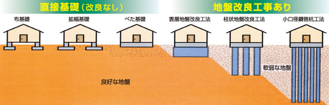 地盤調査の結果、地盤が弱かったり、土地の改良が必要になった場合、地盤改良を行う必要が出てきます。