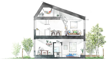 ヘーベルハウスは、ハウスメーカーのような工業化を推し進めた住宅の中でも、二世帯住宅のプランを得意としており、ライフスタイルに合わせた二世帯住宅のデザインやプランニングが可能です。