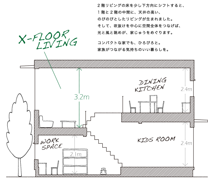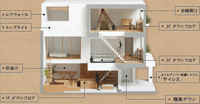 音の対策は、特に二世帯住宅などに有効で、各階の音が伝わりづらい仕様になっています