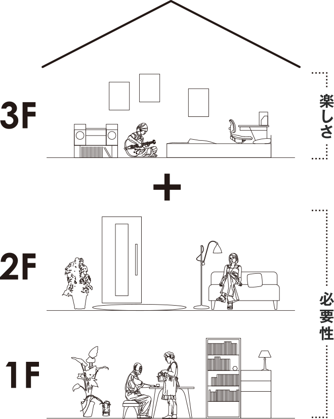 - 4.10 ・Vieuno 3E (ビューノ スリーイー)の特徴1:勾配屋根や勾配天井を生かした間取り
