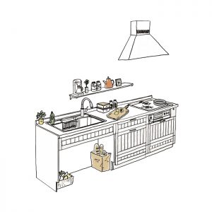 「既製品」を使いながらも、オリジナリティーにこだわりたいのであれば、「既製品の設備機器」をベースに「造作」と組み合わせる方法もあります。