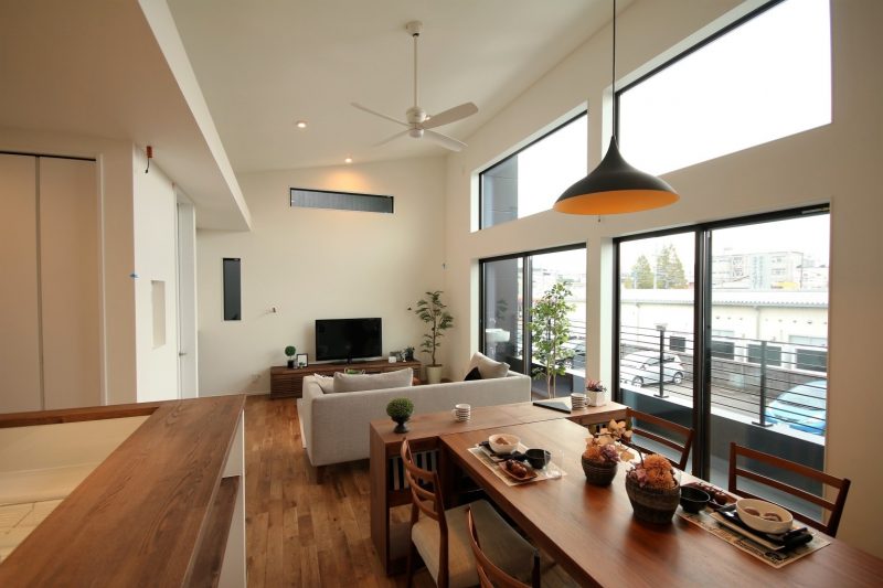 2階リビングは、風通しもよく、吹き抜けのリビングにすれば、部屋が明るく、風通しの良い、開放的なリビングにすることができます。