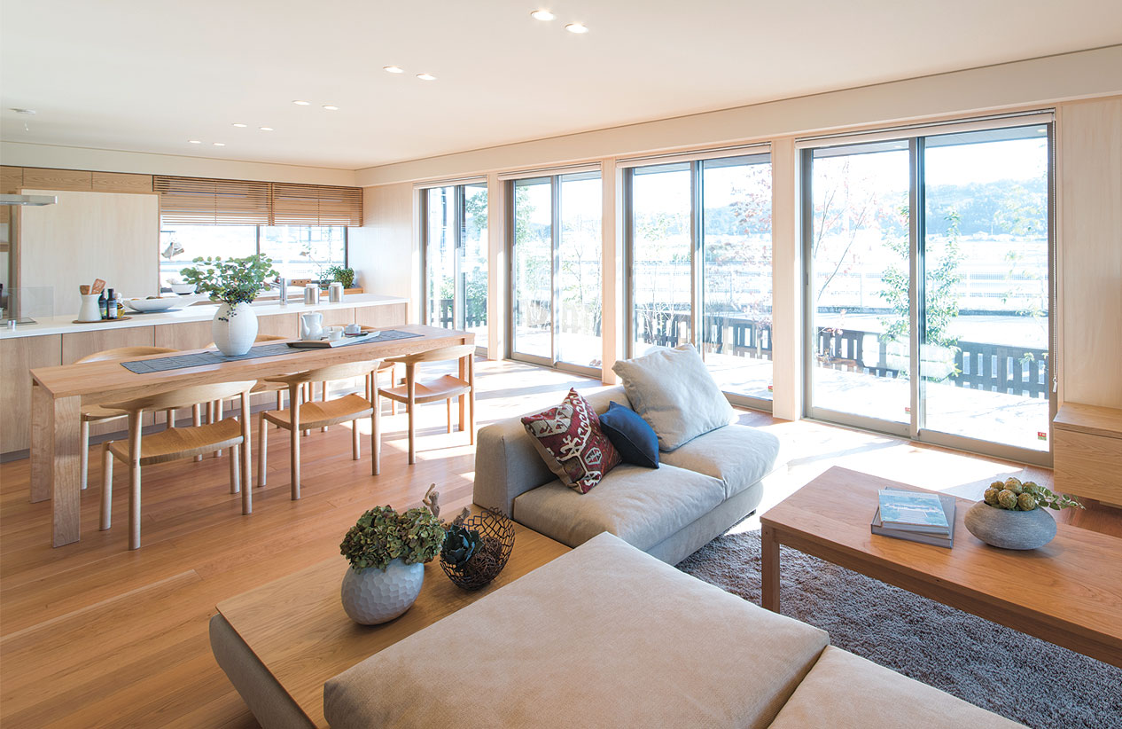 地面との距離が近いため、落ち着いたリビングにすることができ、安心できるという声を多く聞きます。