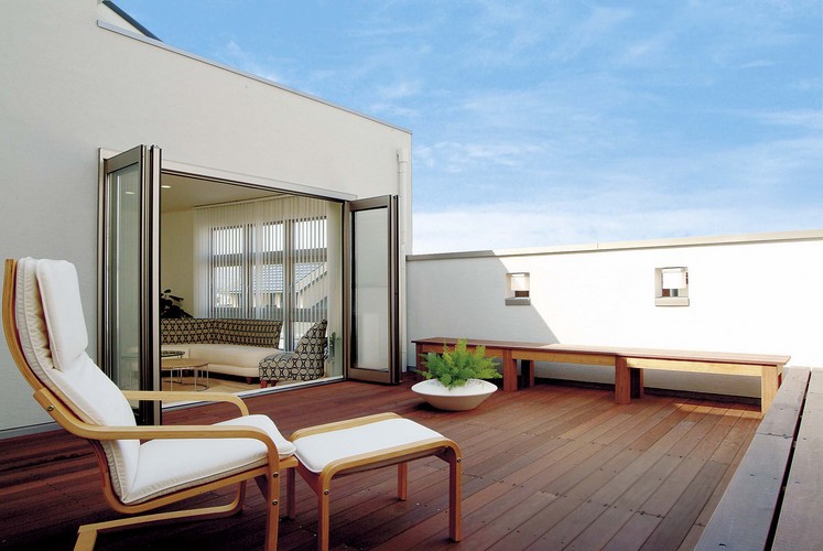 また、建て込んだ住宅地で、視線が気になる場合は、奥行きのあるデッキテラス(バルコニー)に、視線を遮るためのハイウォールを設置すれば、明るさを損なわずに、周囲からの視線を遮ることができます。
