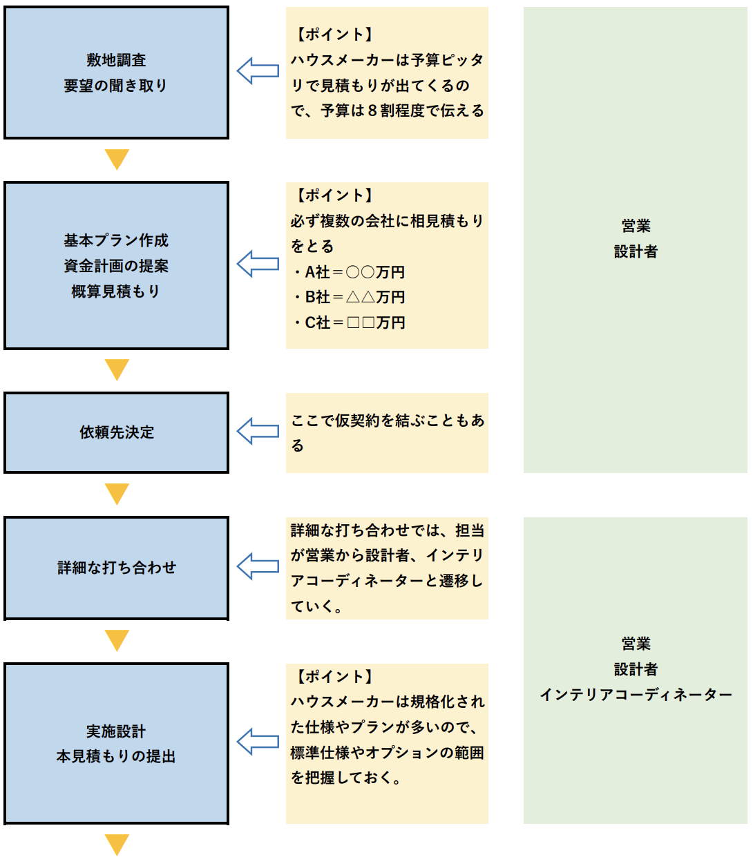つまり「準備期」までの期間で、建主が直接関われる、家づくりのほとんどが終わります。