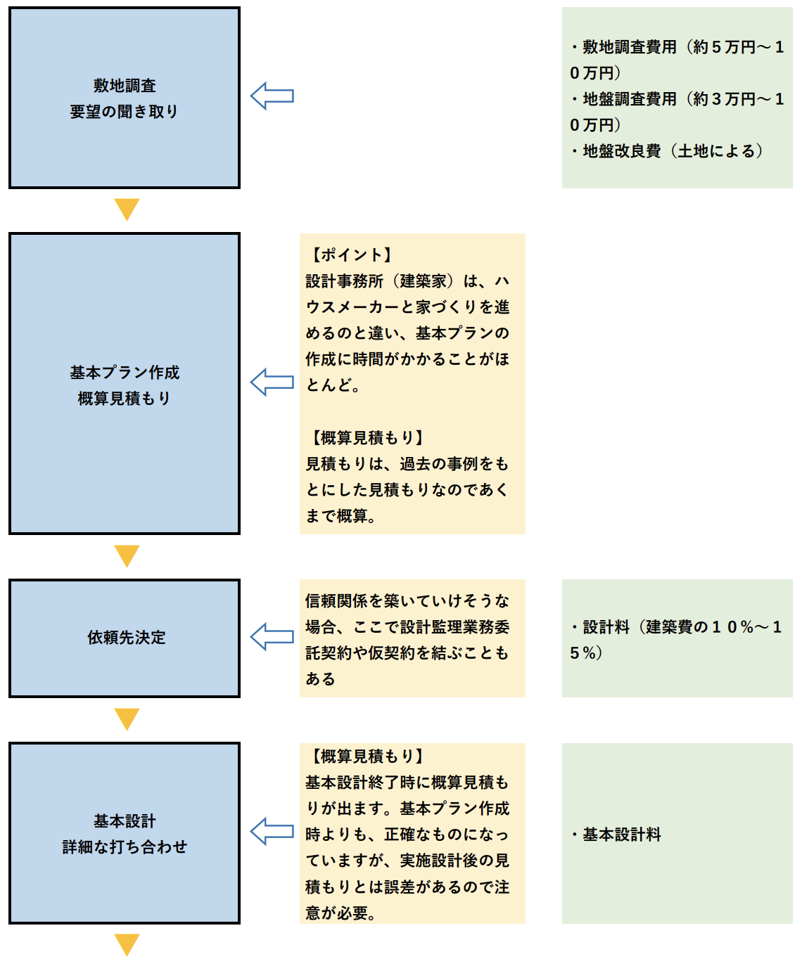 過去の事例をもとに、予算内に収まるか「概算見積もり」を出していきますが、基本プランを重ねることで、より正確な見積もり金額が弾き出されていくからです。