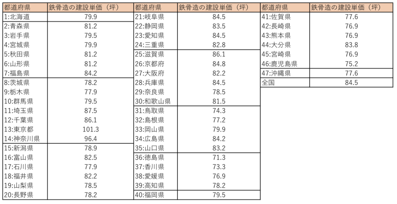 【2021年版】注文住宅の都道府県ごとの構造別、一平方メートルあたりの建設単価