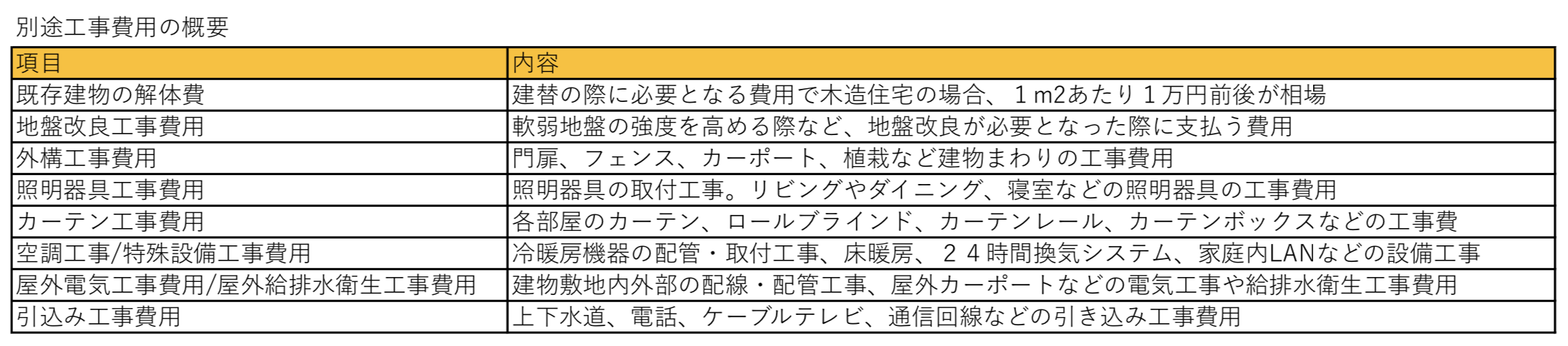また、注文住宅の場合、価格表示が、家づくりの80%程度の本体工事費のみで表示されていることがありますが、ここで算出した金額は、あくまで総費用での金額になる点にも注意してください。