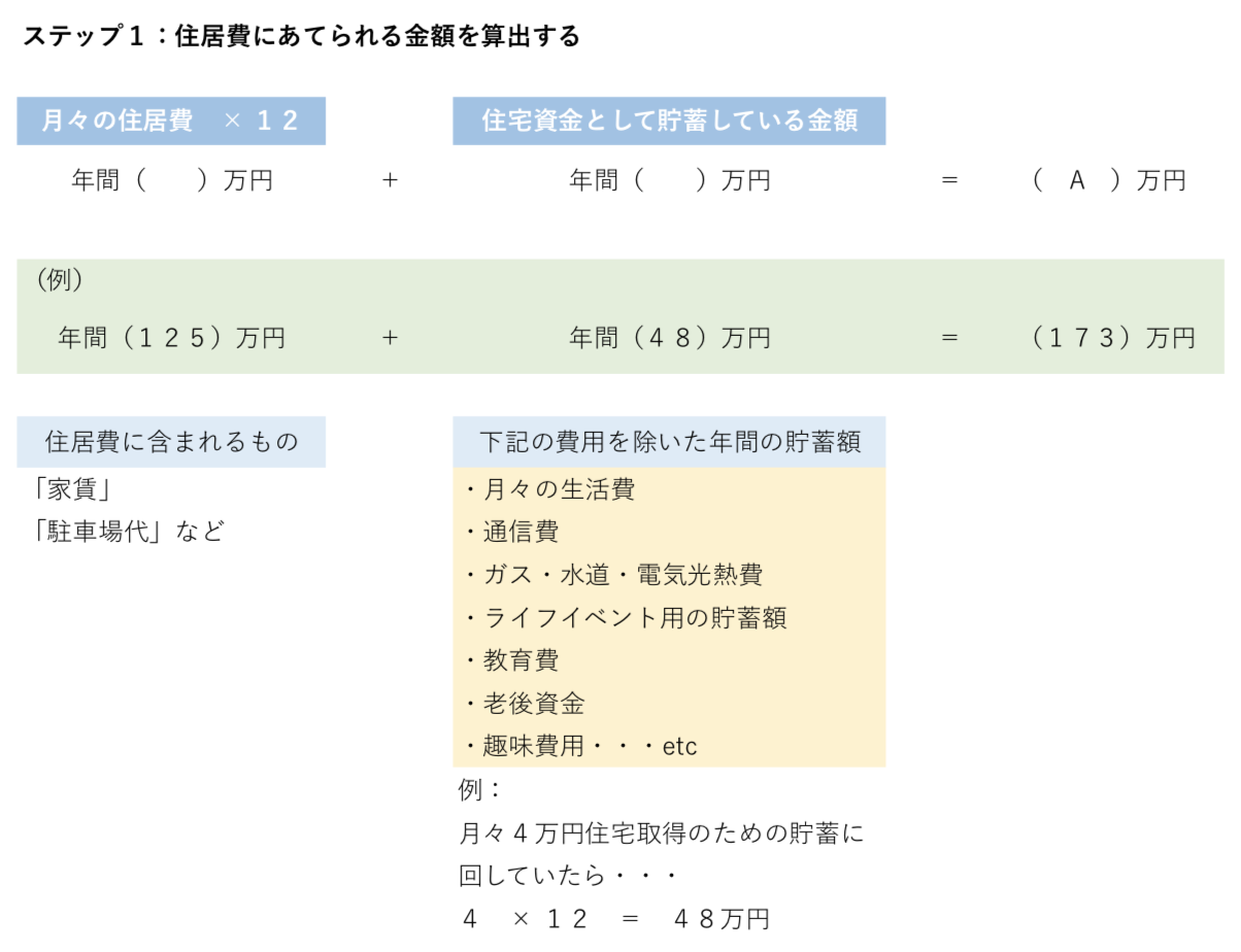 ステップ1:住居費に当てられる金額を算出する