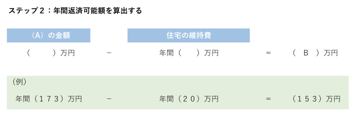 ステップ2:年間返済可能額(住宅の維持費を差し引く)