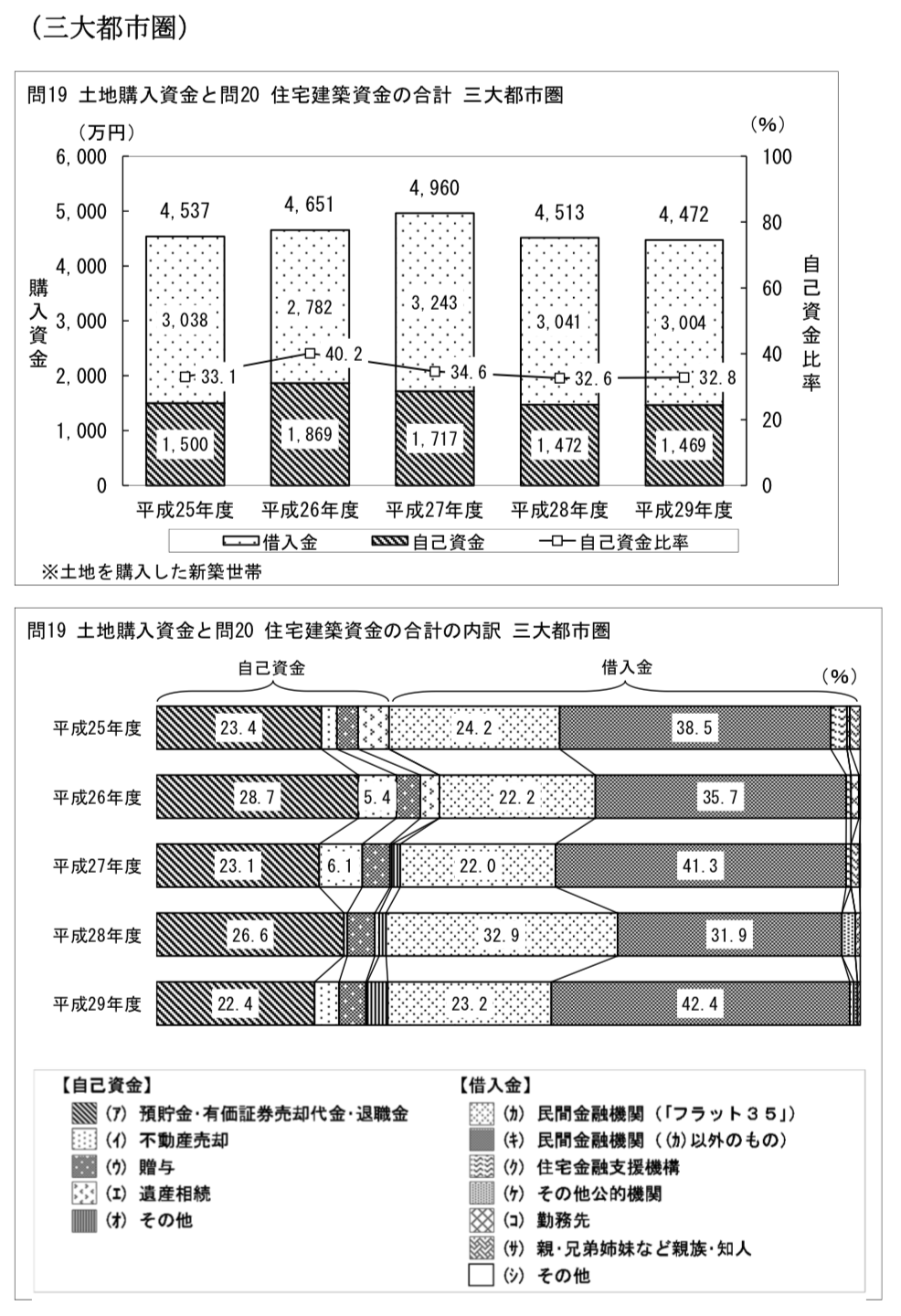 土地購入資金借入金も返済期間は「35年以上」が最も多く全国では78.2%、三大都市圏で75.8%となっています。