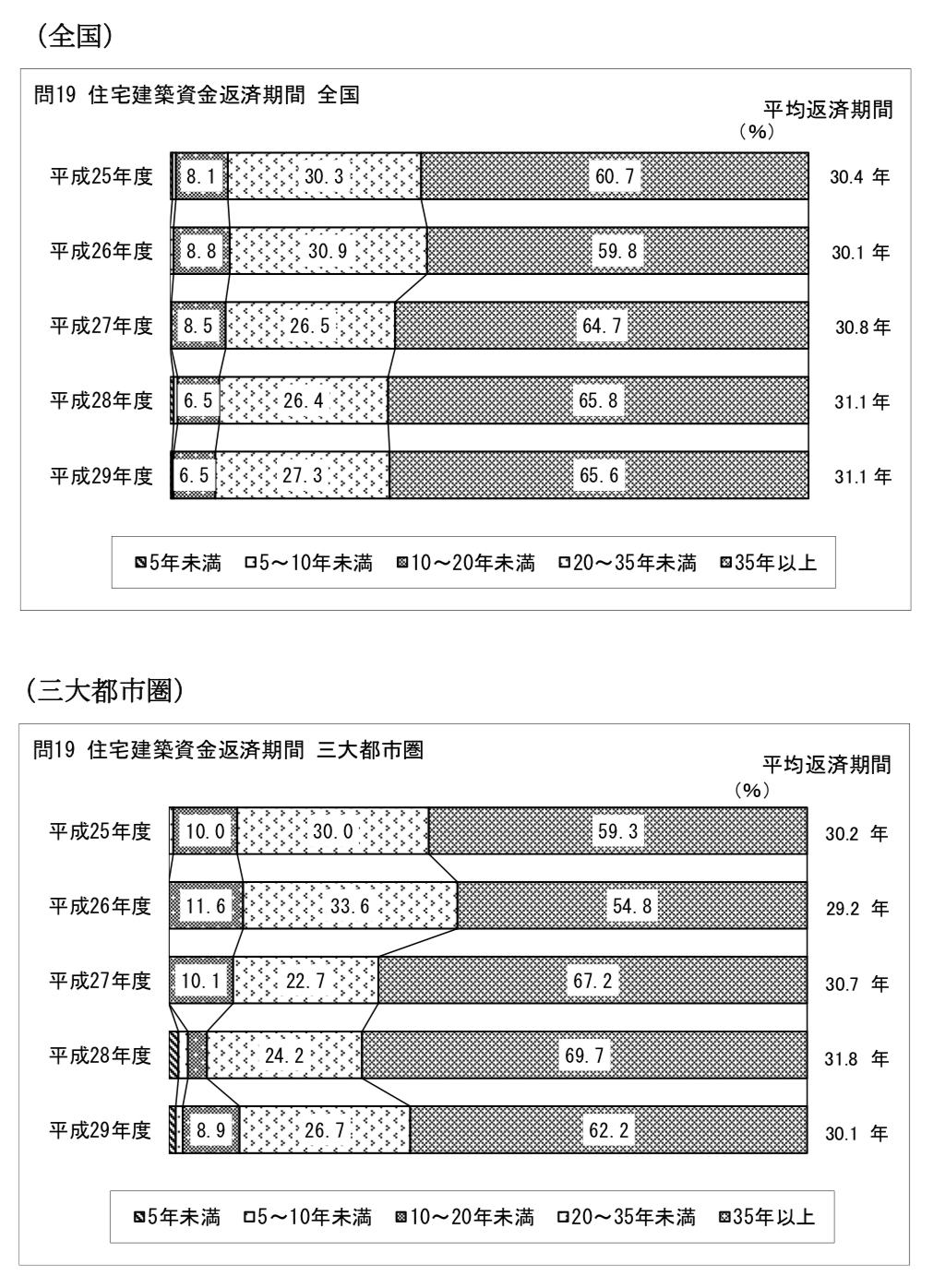 平均返済期間は、全国で31.1年、三大都市圏で30.1年となっています。