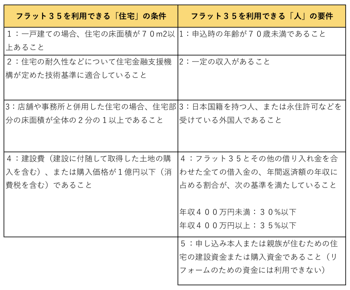 フラット35を借りるための条件は?