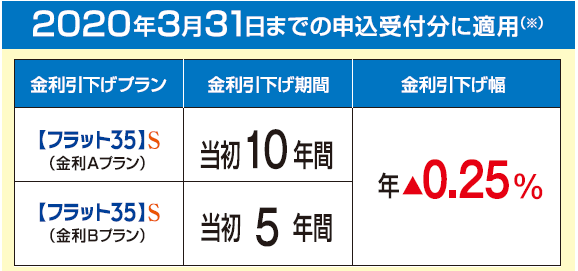 フラット35では、物件が一定の基準を満たした場合フラット35Sが適用され、期間限定で金利を0.25%低く借り入れることができます。