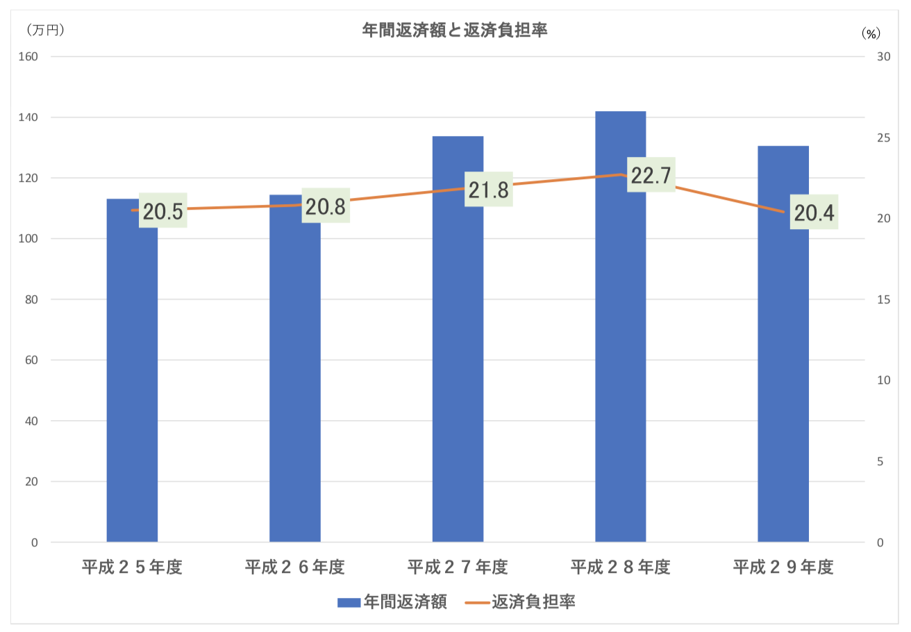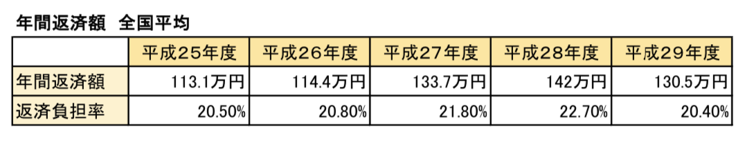 また、年収に対する住宅ローンの返済負担率は、平成25年度「20.5%」、平成26年度「20.8%」、平成27年度「21.8%」、平成28年度「22.7%」、29年度では「20.4%」と推移しています。